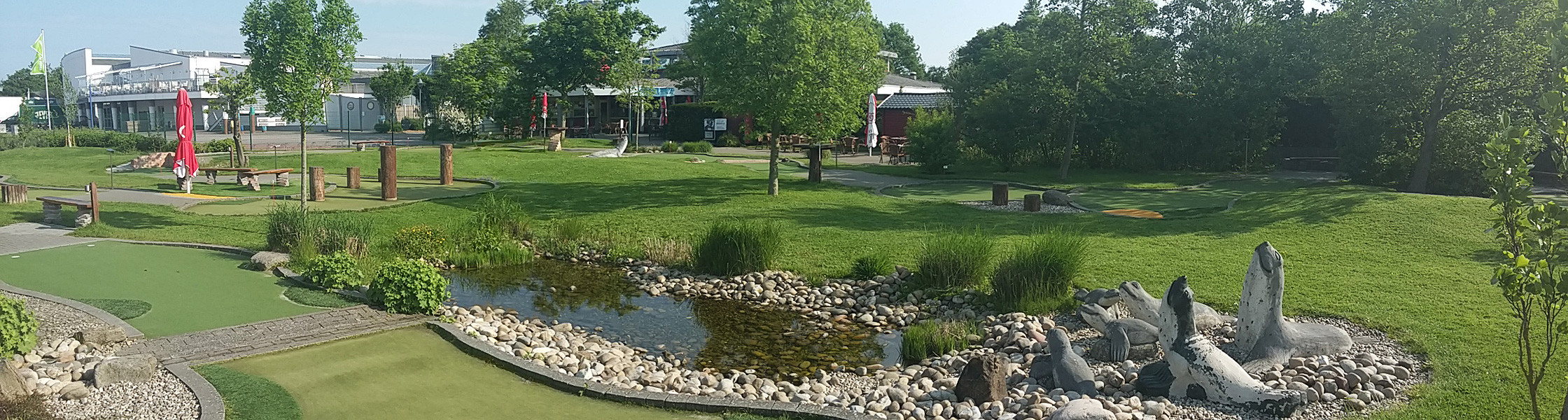 Jährlich spielen in Deutschland ca. 20 Millionen Menschen Minigolf, Abenteuergolf ist eine Steigerung! 18 Spielbahnen aus Kunstrasen fügen sich natürlich in die Landschaft ein. Sie sind größer als deutsche Minigolfbahnen (30-50 qm), und man spielt Abenteuergolf im Gegensatz zum herkömmlichen Minigolf auf den Bahnen. Verbringen Sie sozial wertvolle Zeit mit Freunden oder der Familie in herrlich gepflegtem Parkambiente. Hier kommt jeder auf seine Kosten, von Kindern über junge Paare und Familien bis hin zu Senioren, von absoluten Freizeitspielern bis hin zu Golfprofis, die sich am Platzrekord messen wollen.